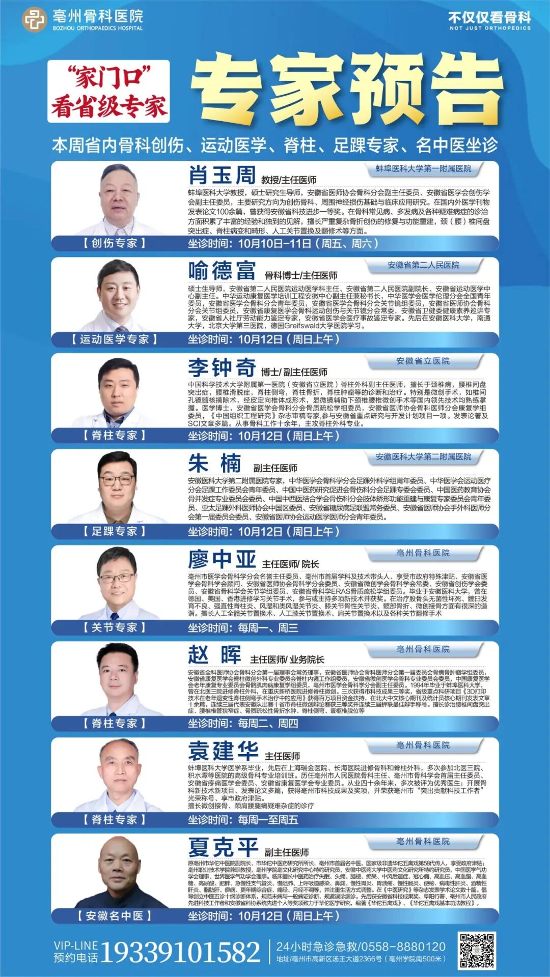 不论您是受到骨伤困扰,还是有运动损伤或足踝问题久治不愈的烦恼,专家们都将为您提供个性化的治疗方案,助力您恢复健康,重焕活力人生!
