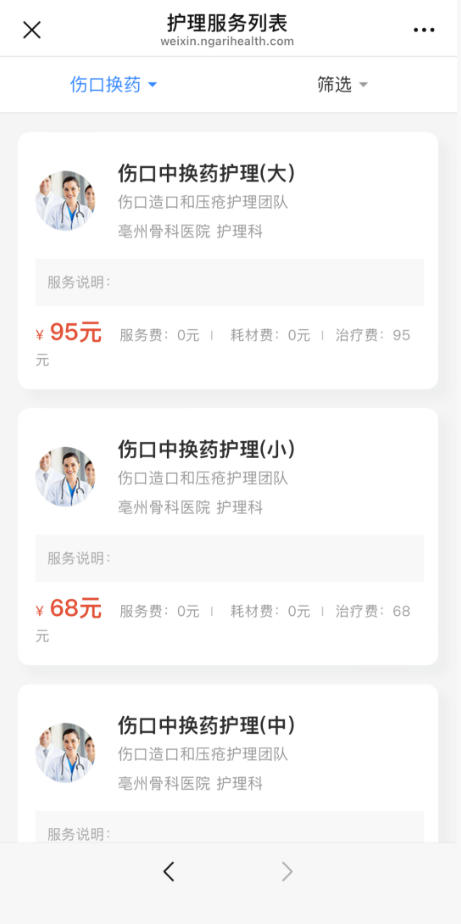 小换药68元,中换药77元,大换药95元 |