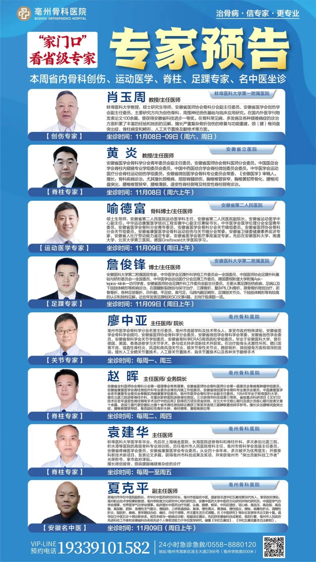 不论您是受到骨伤困扰,还是有运动损伤或足踝问题久治不愈的烦恼,专家们都将为您提供个性化的治疗方案,助力您恢复健康,重焕活力人生!