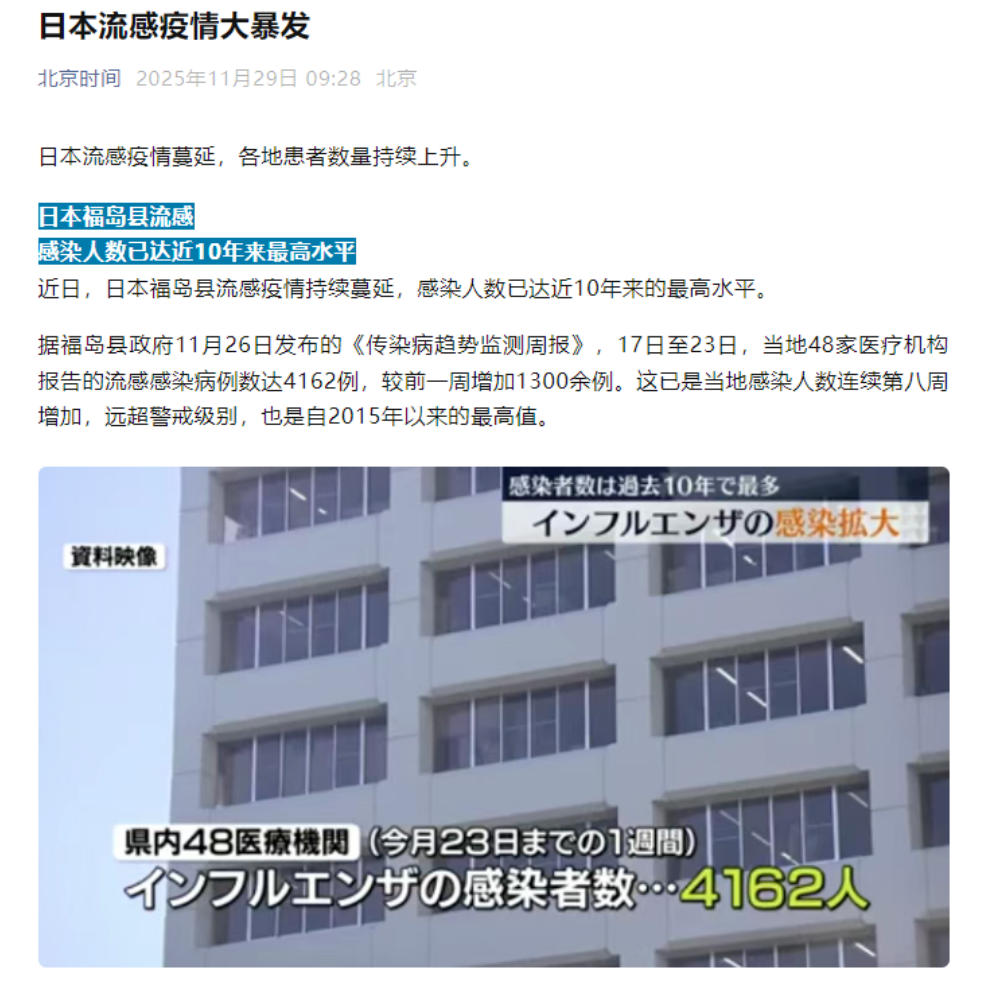 全国门急诊流感样病例阳性率已接近 45%,整体进入 中流行水平,部分省份甚至已经达到 高流行水平。