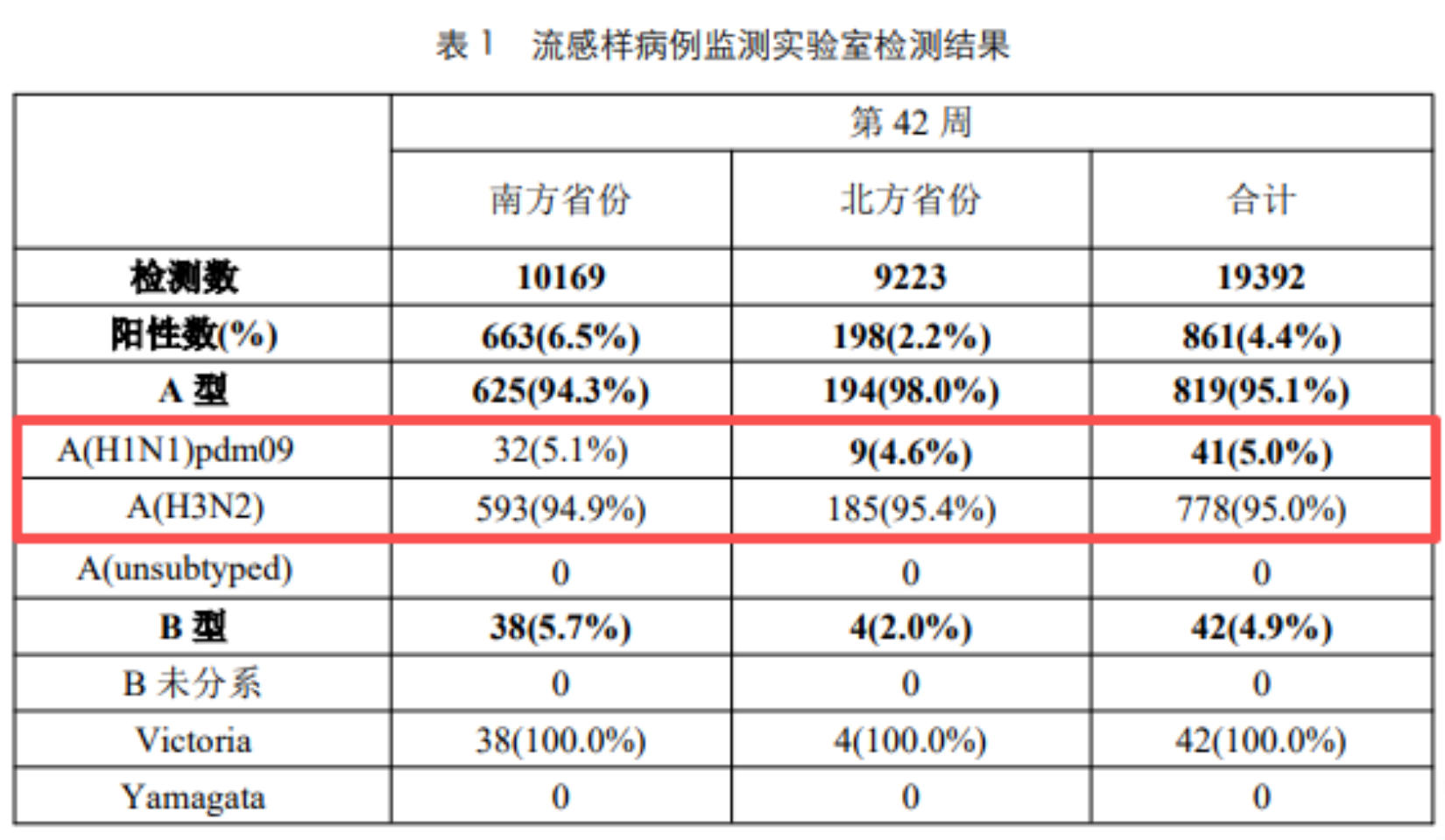 2025年第42周,流感样病例监测标本。来源:中国疾控中心