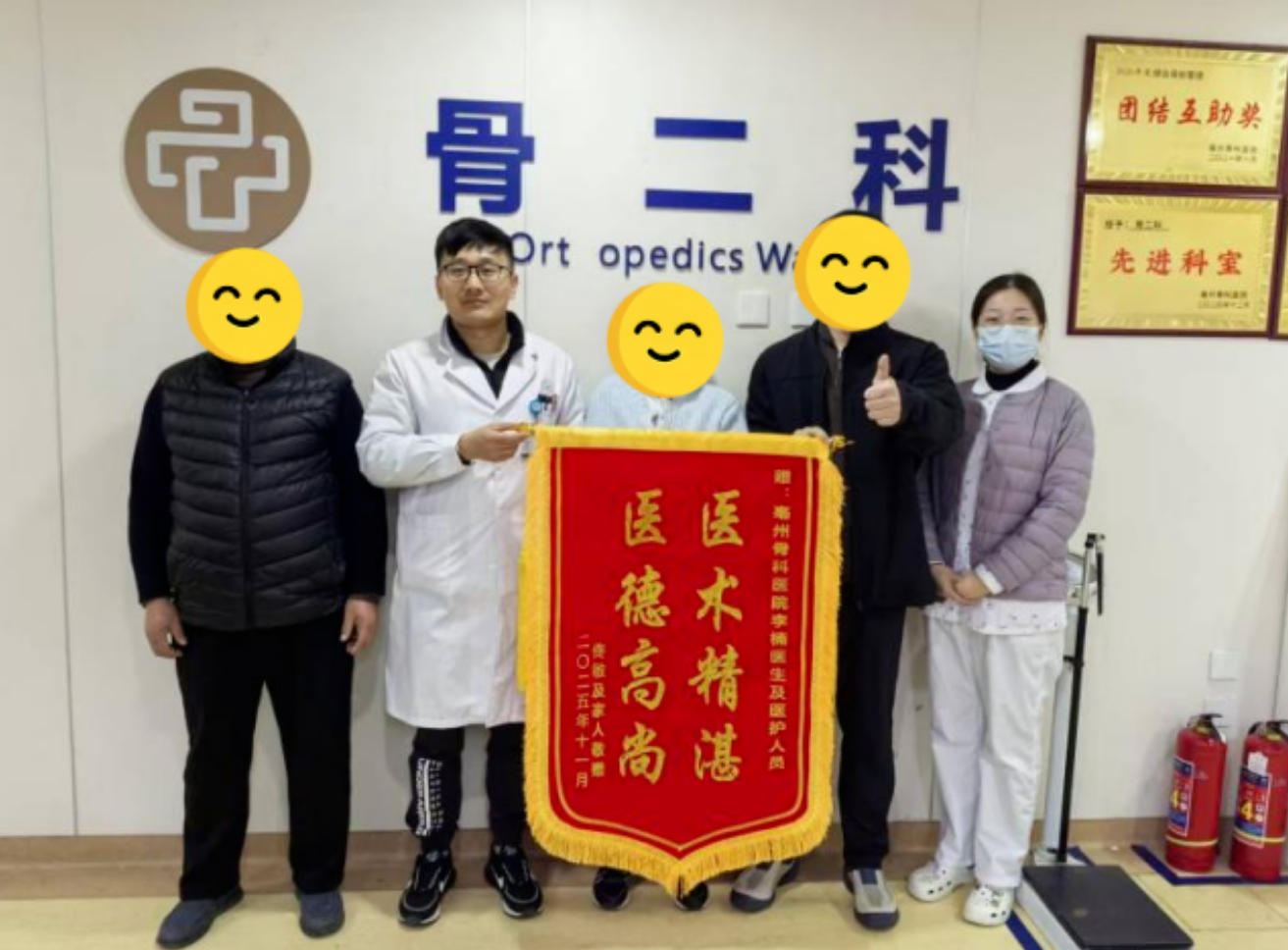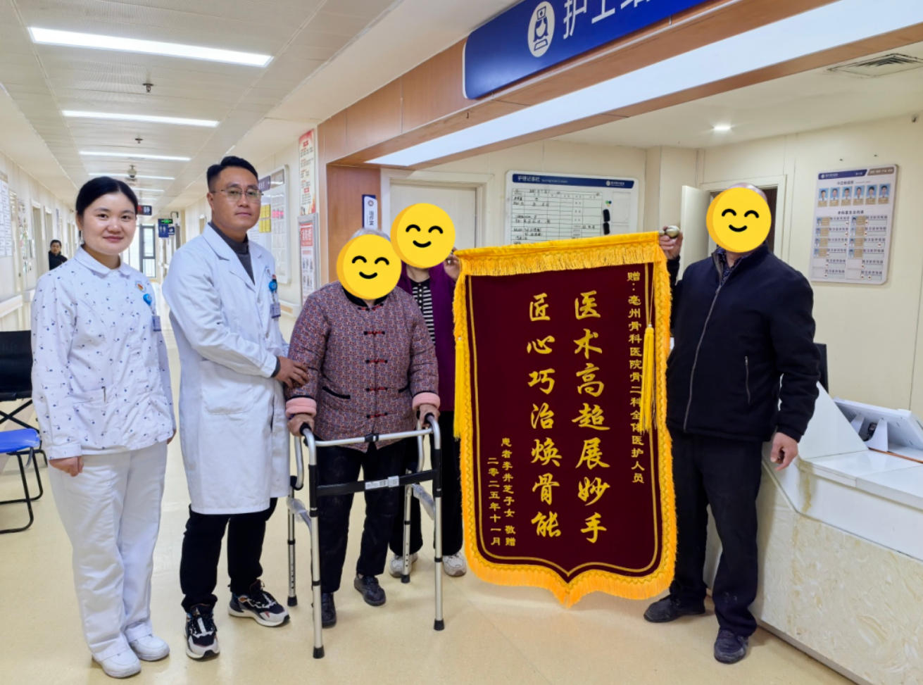 李奶奶在医护指导下,术后第一天即能下床站立活动,极大提高了康复信心。家属的担忧转为欣慰,并特意送上锦旗致谢。这面锦旗,承载着对廖院长团队精湛技术与人文关怀的至高认可。技术与温度并存,才是优质医疗的真谛。