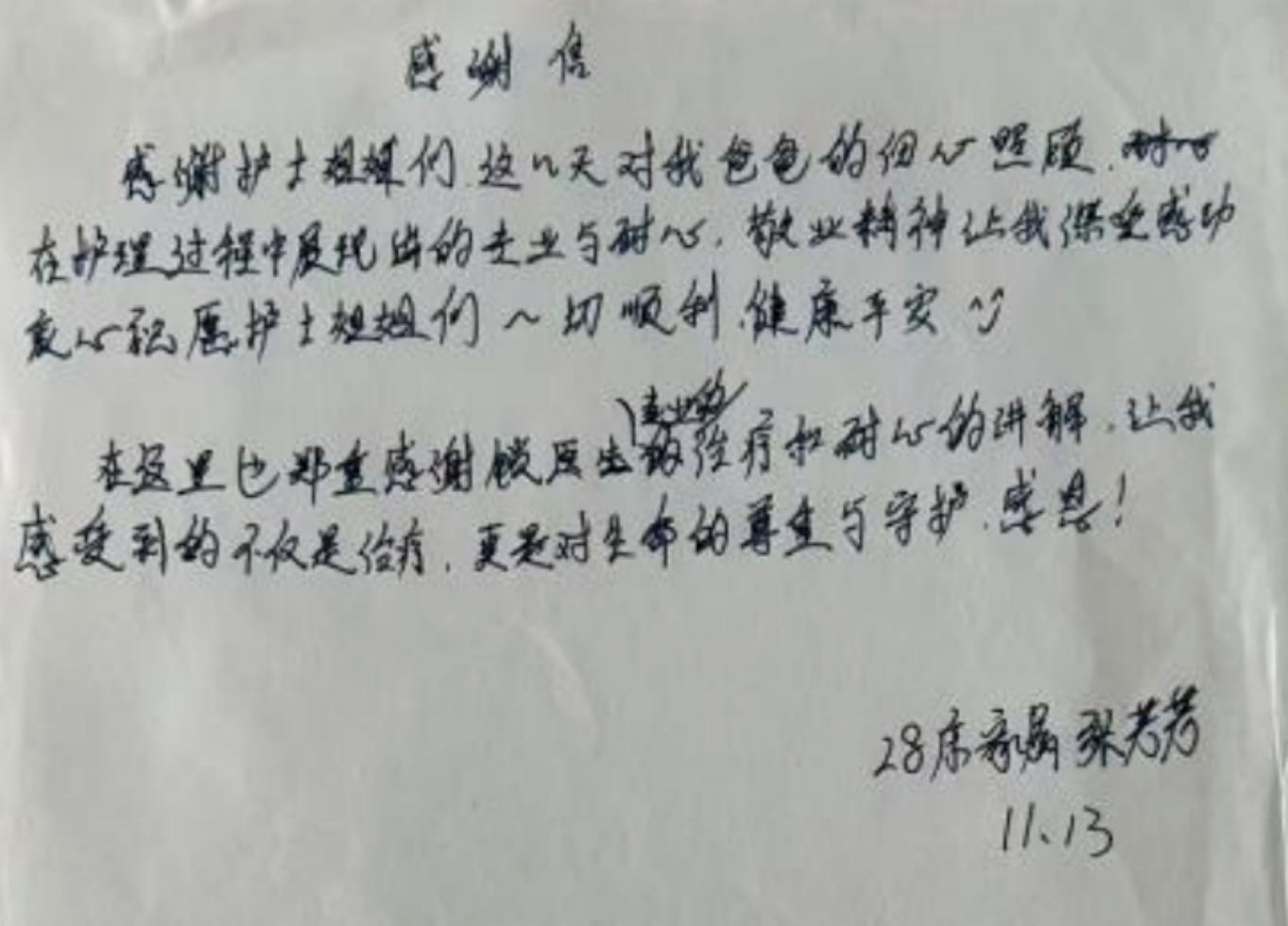 感谢护士姐姐们,这几天对我爸爸的细心照顾。在护理过程中展现出的专业与耐心,敬业精神让我深受感动,衷心祝愿护士姐姐们一切顺利,健康平安^.^