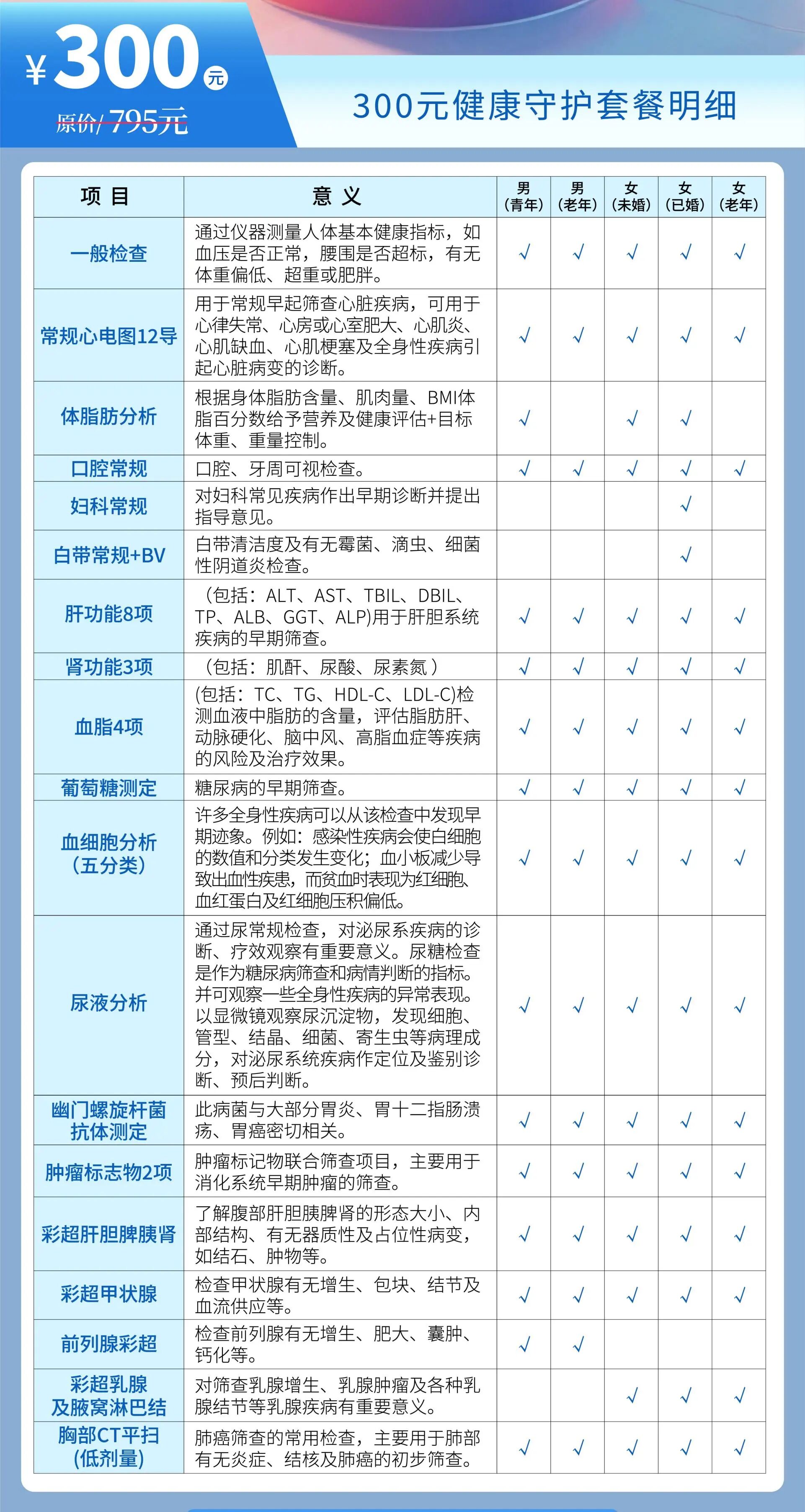 和家人、朋友一起体检,更省钱 双人同行以下套餐立减优惠: