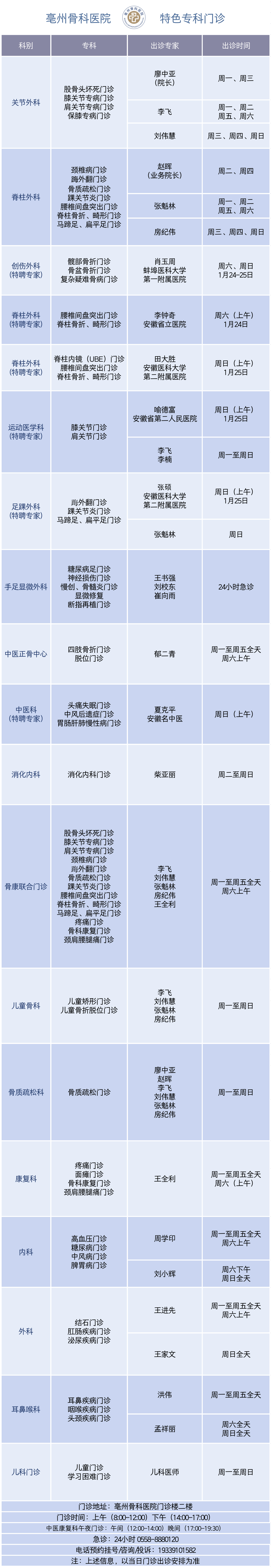 24小时急诊急救电话:0558-8880120 24小时咨询投诉:19339101582 普惠体检中心:0558-5520830