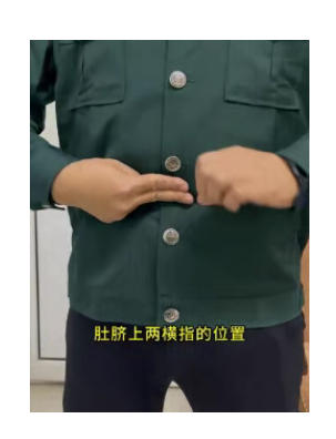 找到肚脐上两横指位置: