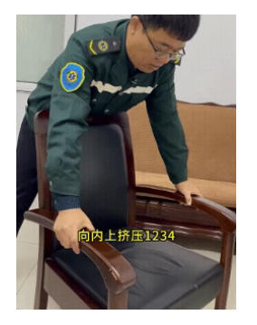 将上腹部抵住椅背、桌边等坚硬边缘,快速向内、向上挤压