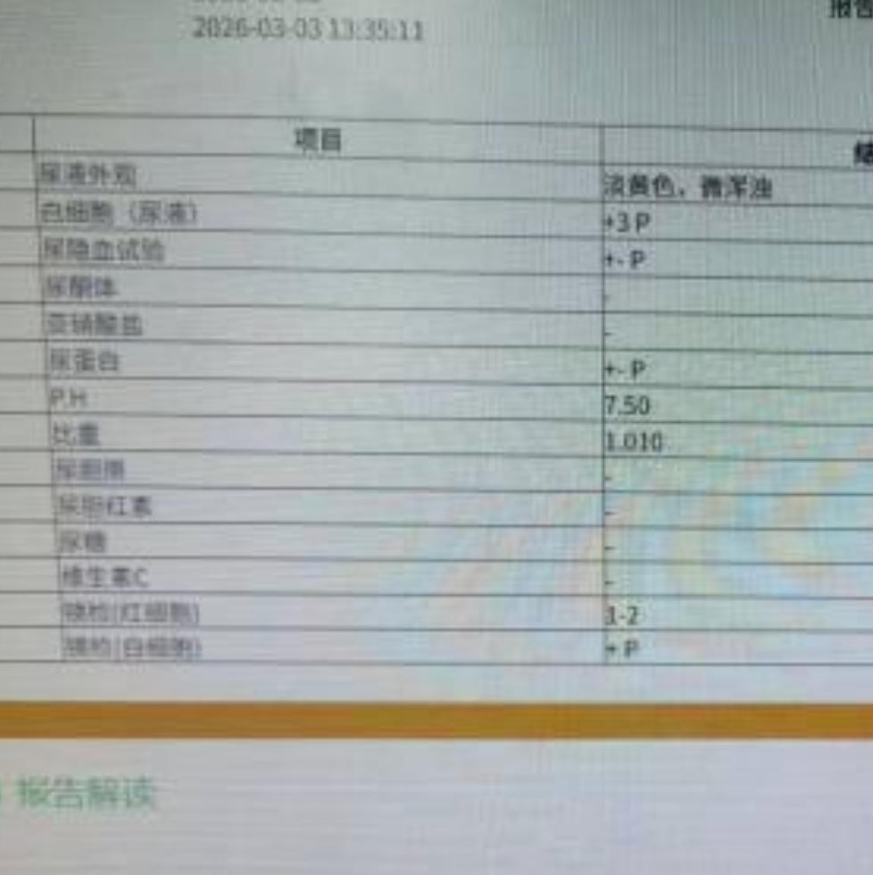 2.血尿:可能是肉眼可见的红色或洗肉水色血尿(肉眼血尿),也可能是显微镜下才能发现红细胞的血尿(镜下血尿)。